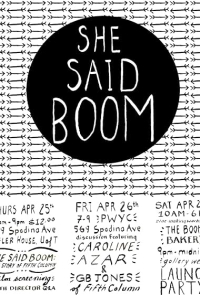 - She Said Boom chronicles 1980s Toronto female artist collective challenging gender norms, homophobia, art conventions through music, film, self-publishing, sparking global art/political movements; explores their underrecognized impact.
